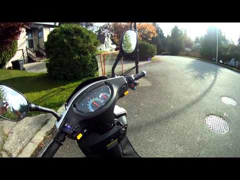 This is a review of my 350W/500W electric scooter. It takes about 4-8 hours to charge and it can go up to 60km on one charge or 37 miles. The max weight it can hold is 330 pounds and it goes 32kmph. When your on it its way faster than it sounds or looks. It lasts me half the day when i charge it. when people say it hates hills...they are wrong...it gopes up most hills for me but it goes just a little slower. If you have any questions just leave them in the comment section below and i will be happy to answer :) The bike weighs 200 pounds i beleive.It has alot of storage for jackets food helmets etc.... The headlights are nice and are not lacking brightness. It has a built ni alarm too! Please Subscribe and Thanks for Watching! :)